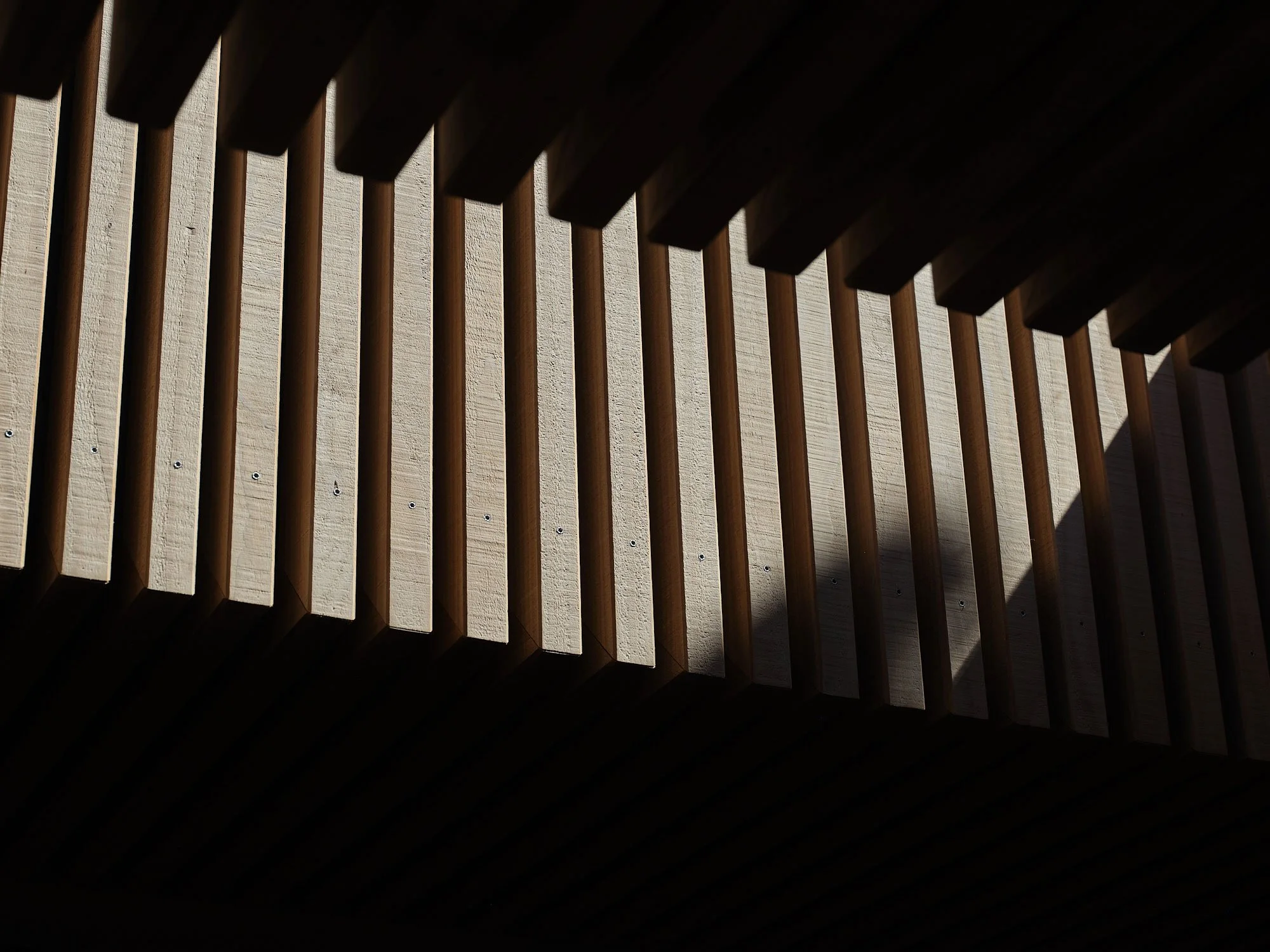 The flat-roofed spaces that connect the vaulted pavilions create a sense of intimacy and reduced scale. These areas serve as places to gather for a meal—whether indoors or outdoors—or simply to move from one space to another. The transition into the vaulted areas is emphasised by the dynamic shift in ceiling heights, adding an experiential quality to the journey between spaces.